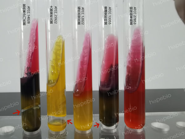 图1 克氏琼脂培养基质控结果(注:红色箭头所指处为产气情况)