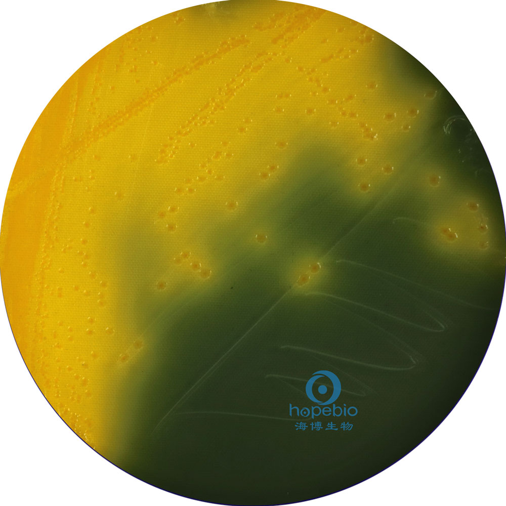 创伤弧菌与霍乱弧菌、副溶血性弧菌等同属弧菌科,具有嗜盐性,在3%左右的氯化钠生长最旺盛,在6%氯化钠胰胨水中也可生长,在无盐胰胨水中不生长,在超过8%浓度的氯化钠胰胨水中通常不生长或生长很微弱,不能分解蔗糖,可以分解纤维二糖,在TCBS上菌落形态与副溶血性弧菌相似,由于不发酵蔗糖菌落呈现蓝绿色,通常使用含有纤维二糖的CC琼脂或MCPC琼脂分离培养,创伤弧菌因分解纤维二糖菌落呈现黄色。