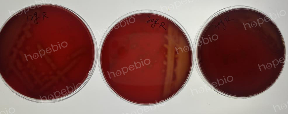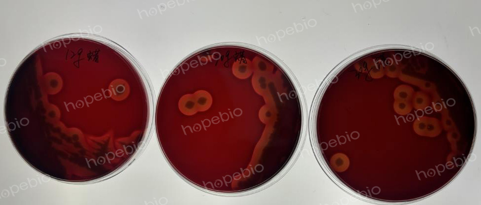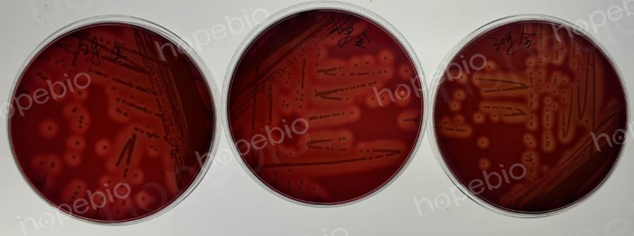 实验测试了12g/L、20g/L、30g/L的血琼脂上产生β溶血的蜡样芽胞杆菌、金黄色葡萄球、乙型溶血性链球菌的溶血效果测试,结果表明,培养基的琼脂量越多,凝胶强度越大,菌落产生的溶血环就会相对偏小。
