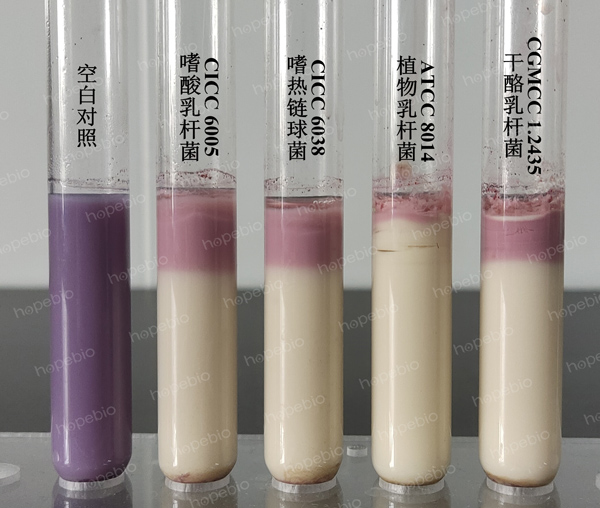 原理:脱脂奶粉中含有乳糖以及三种主要的蛋白质,即酪蛋白、乳清蛋白和乳球蛋白。某些含有凝乳酶的细菌可以使牛奶凝固,这些细菌通过使酪蛋白转化成副酪蛋白,或者发酵乳糖产生大量酸使酪蛋白沉淀使牛奶凝固。石蕊是一种pH指示剂,酸性溶液(pH≤4.5)呈红色,碱性(pH>8.3)呈蓝色,