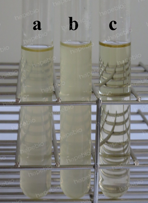 备注:a:大肠埃希氏菌(ATCC8739),b:大肠埃希氏菌(ATCC25922),c:空白对照