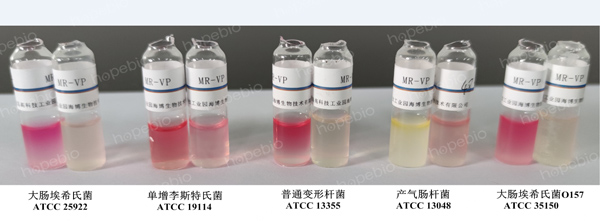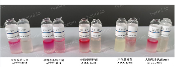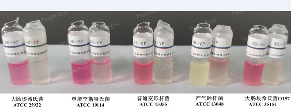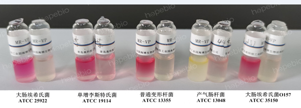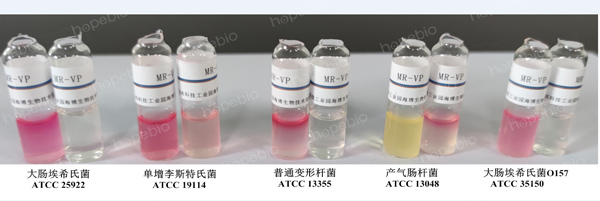 1、取适量培养物制备菌悬液,接种于MR-VP生化管中,36℃±1℃培养24h-48h。
