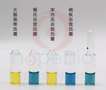 此培养基内的蛋白胨提供碳源、微生物的生长因子;氯化钠维持渗透压;溴麝香草酚蓝为pH指示剂;若细菌能发酵乳糖,则产酸使pH下降,指示剂颜色变黄;若不能发酵,则溶液颜色不变。志贺氏菌中的宋内志贺氏菌为乳糖迟缓发酵,在一般的乳糖发酵管中观察不到阳性结果,需要在5%乳糖的发酵管中诱导培养3-7天,可观察到阳性结果。