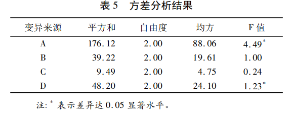 从表5可见,培养基与活性炭的作用达到显著水平,而NAA与蔗糖对生根壮苗的作用不显著。在本试验设计范围内,得到罗汉果组培苗生根壮苗较优的组合为A2B3C3D2,即1/2MS培养基+NAA 0.5mg/L+蔗糖30g/L+活性炭0.5g/L。