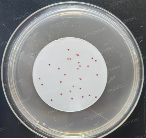 粪链球菌典型菌落在滤膜上呈现大小不等的红色或粉红色(如图4),计数可疑菌落。