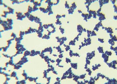 b、用接种环从脑心浸液琼脂培养基平板上挑取培养物进行革兰氏染色,镜检观察,可疑菌应为革兰氏阳性球菌(如图6)。
