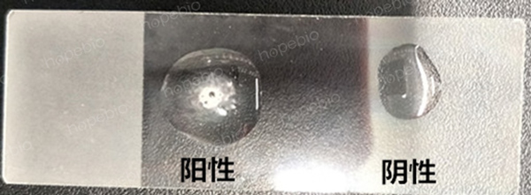 如果30s内有气泡发生,则过氧化氢酶反应为阳性(如图7左),则该菌不属于粪链球菌,确证试验到此即可停止;如果30s内没有气泡发生(如图7右),则显示过氧化氢酶反应为阴性,则该菌可视为粪链球菌可疑菌,需继续后面的确证过程。