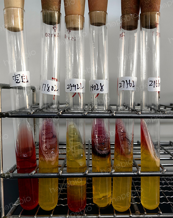 称取本品91.5g,加热溶解于1000ml蒸馏水中,分装于15mm×150mm试管中,121℃高压灭菌15分钟,制成斜面,斜面长4-5cm ,底部深厚2-3cm,备用。