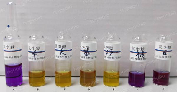 此生化管内含有鼠李糖,若细菌能发酵鼠李糖,则产酸使溶液pH下降,使酸碱指示剂溴甲酚紫颜色变黄;若不能发酵鼠李糖,则溶液颜色不变。