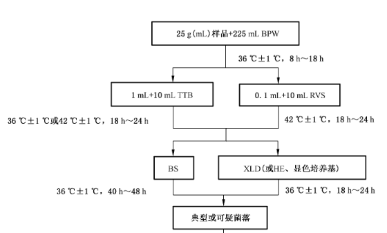 取100 μL增菌液倾注于TSA平板36℃±1℃培养18h-24h。 |
