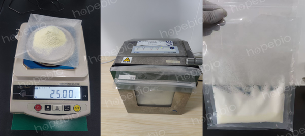 称取奶粉样品25g,放入盛有225mL的PBS或生理盐水的无菌均质袋中,用拍击式均质器拍打1min~2min,作为1:10的样品匀液(如图2)。若样品不同,也可选用其它方法进行均质混匀,具体操作参照《国标》进行。