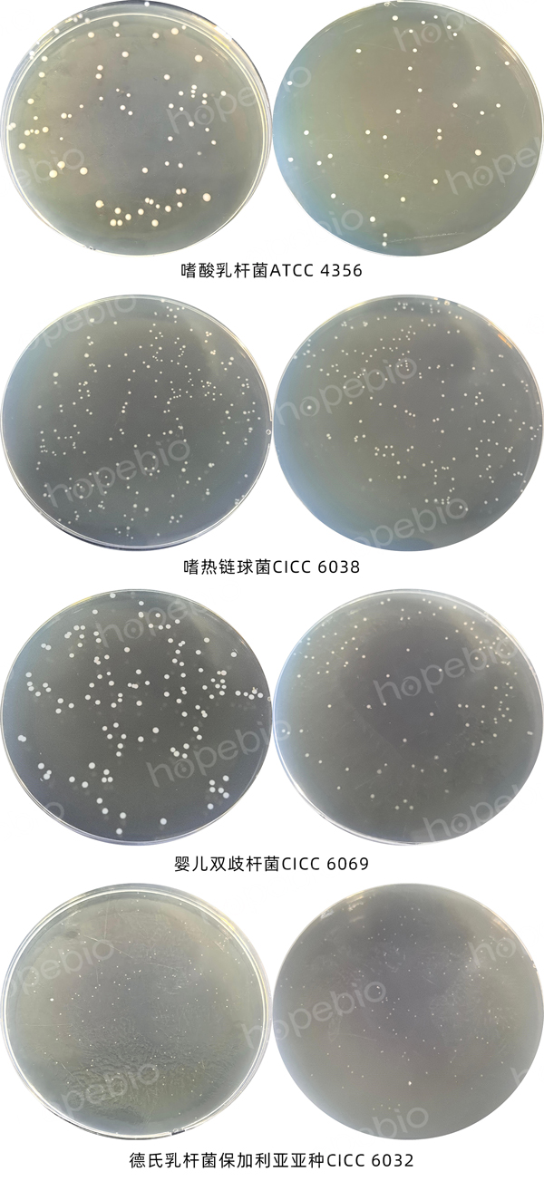 MRS琼脂(参比培养基)(左)以及MRS琼脂(不含葡萄糖)(右)