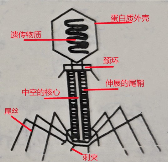 图1 噬菌体模式图(图片引自周德庆,微生物学教程第3版)[1]