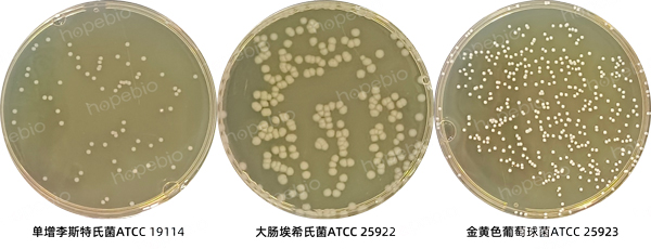 2. 10倍梯度稀释法制备质控菌株菌悬液,吸取适宜梯度的菌悬液接种于待测培养基(李斯特氏菌增菌肉汤(LEB))以及参比培养基(胰蛋白胨大豆琼脂(TSA)HB0177)。