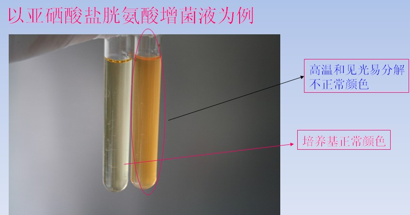 某些培养基中的某些成分,在不适当的保存条件下,发生热解、光解等化学反应,导致培养基组分发生改变,影响培养基失效。