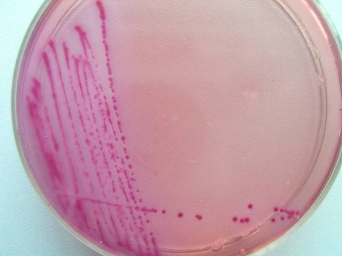 其中蛋白胨提供氮源;酵母粉提供生长促进因子和B族维生素;乳糖提供碳源,大肠菌群发酵乳糖,产生酸性物质;3号胆盐是一种抑菌剂,主要是抑制革兰氏阳性菌;结晶紫也是一种抑菌剂,主要是抑制革兰氏阳性菌和一部分革兰氏阴性菌;中性红是一种指示剂,在酸性条件显红色,碱性条件下显无色。氯化钠维持细菌生长时的渗透压。