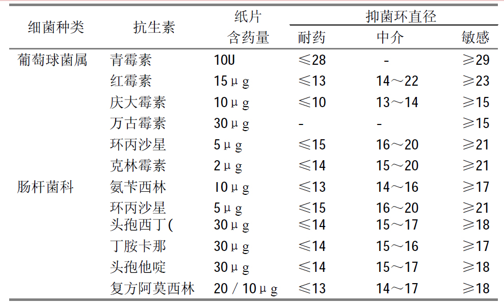 附:纸片法药敏试验纸片含药量和结果解释(NCCLS 1998 年)