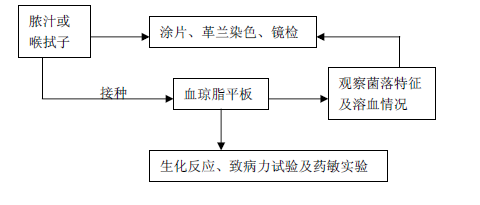 2.培养基:血琼脂平扳、甘露醇发酵管、菊糖发酵管。