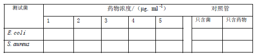 3.分别取0.2ml 菌液加入上述试管中,充分混匀,另做两个对照,即:只含菌和只含药剂