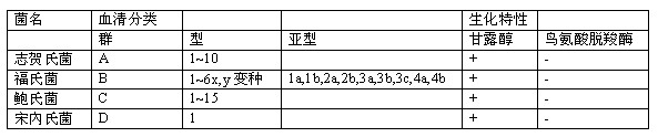 后者进一步再根据靛基质产生与否,分为:靛基质阳性(福氏菌1、2、3、4、5型和鲍氏菌5、7、9、11、13、15型)