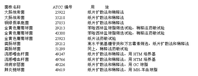 NCCLS推荐的药敏试验质控菌株