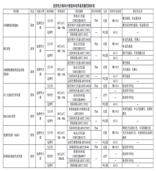 选择性增菌培养基质量控制标准
