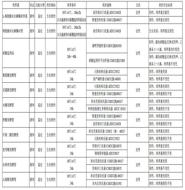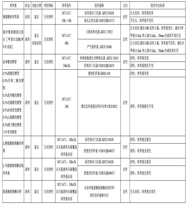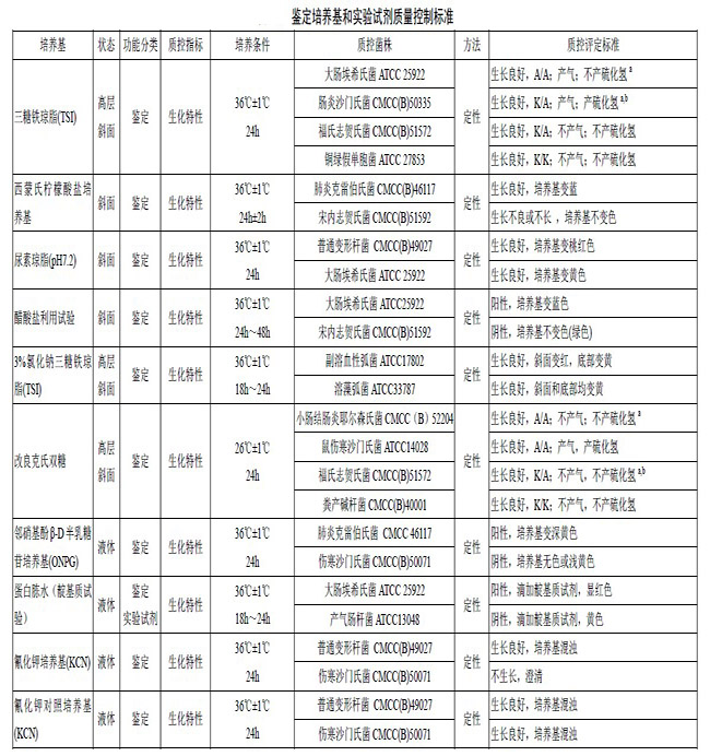 鉴定培养基和实验试剂质量控制标准(一)
