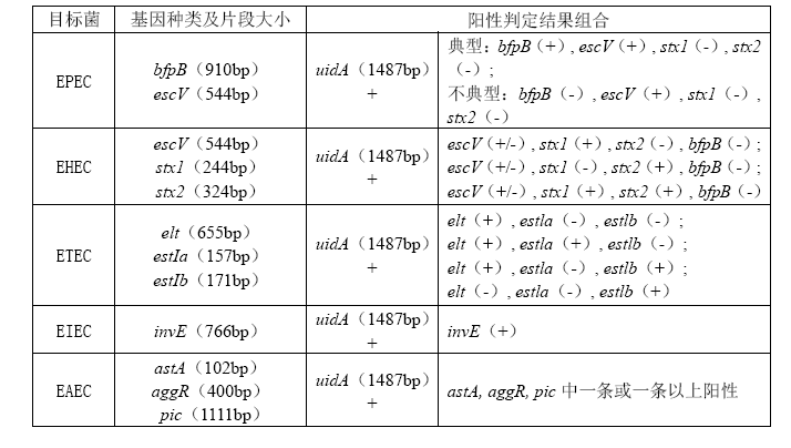 五种致泻大肠埃希氏菌目的基因PCR 扩增阳性结果
