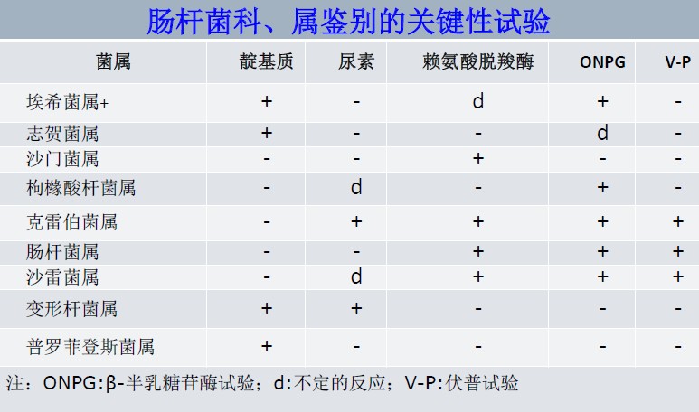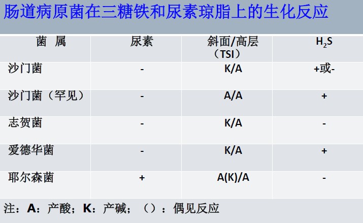 沙门菌的生化特征在肠杆菌科的鉴定中有非常重要的地位,时至今日,随着自动化设备的普及并不能完全放弃生化鉴定这一重要手段,已知在某些世界性的权威微生物实验室内仍保留有全部用手工配制的生化来鉴定细菌部门。主要是依赖于沙门菌属具有的一些独特的生物学形状和生化特性构成了与肠杆菌科其他种属细菌鉴别的微生物学生理基础。这是应用微生物学所包含的重要理论知识。在目前许多实验室普遍依靠自动化微生物分析系统鉴定微生物的背景下,强调这种看似过时的知识点就有更加重要的意义,一旦技术人员沦为机器的奴隶后,那么作为理论基础的经典理论会首先被遗忘,随后面临的是未来的技术人员缺少技术创新和解决问题的能力。