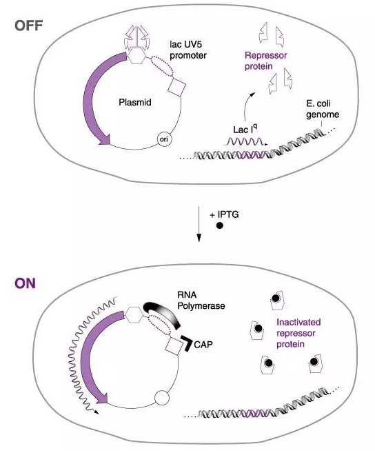 看到这里是不是很熟悉,你的基因转入质粒以后,是不是用 IPTG 诱导的?加入一定抗性,优化条件,是不是蛋白表达了?具体怎么会表达的,结合上述大肠杆菌的结构,有没有稍微懂一点呢?