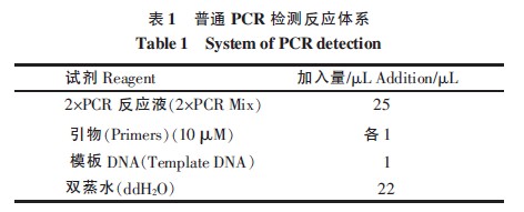 反应条件:94 ℃预变性5 min,94 ℃变性30 s,57 ℃退火30 s,72 ℃延伸30 s, 进行35 个循环,72 ℃延伸5 min,4 ℃下保存。反应体系见表1。