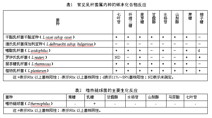 9.2.3 乳酸菌菌种主要生化反应见表1和表2。