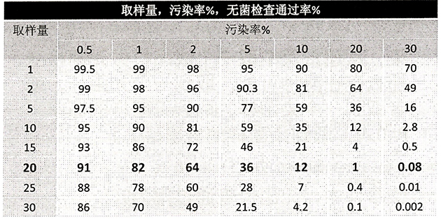 无菌是根据概率的原则判断的。从给定批号的所有产品中存在被污染产品的概率得出判断