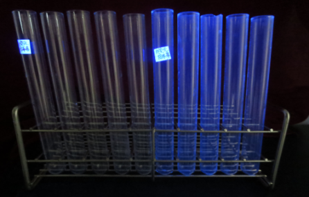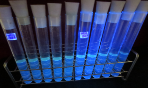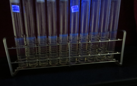 5.紫外灯下,两组试管大肠杆菌荧光明显,且两组试管无明显区别(见图5)。