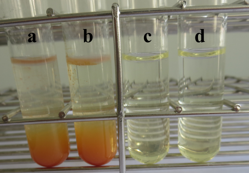 3、在36±1℃培养20-24小时,滴加钠氏试剂数滴,记录实验结果。