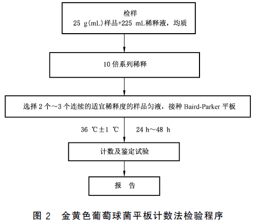 金黄色葡萄球菌平板计数法检验程序见图2。