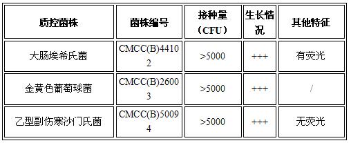 接种以下质控菌株,在30-35℃培养5-24小时:
