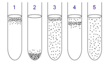 1-5试管内的培养基均为为巯基乙酸肉汤(巯基乙酸肉汤用于测试微生物对氧含量需求的高低,巯基乙酸酯钠与从上往下扩散的氧气结合,氧气浓度随深度的增加而降低)。
