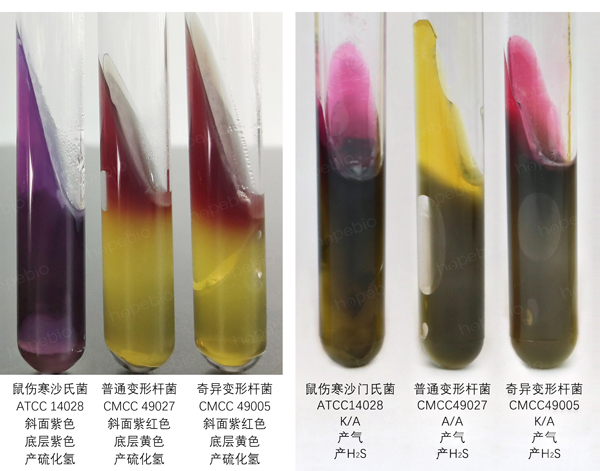 图2 LIA与TSI斜面上沙门氏菌和变形杆菌的对比