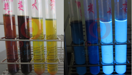 实验现象说明:单增李斯特氏菌、英诺克李斯特氏菌可在此培养基生长良好,并水解七叶苷使培养基变黑(左侧照片),并在紫外灯下失去荧光(右侧照片)。大肠埃希氏菌、粪肠球菌在此培养基中生长受到抑制,培养基不浑浊,荧光不消失。