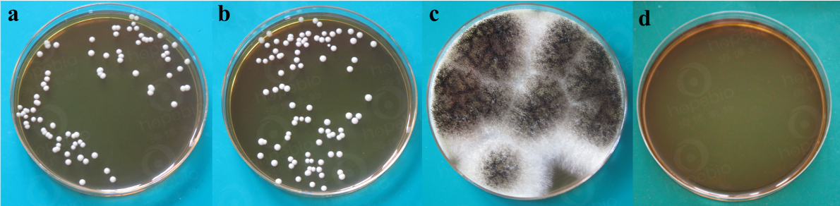 备注:a为酵母菌,b为白色念珠菌,c为黑曲霉,d为空白平板