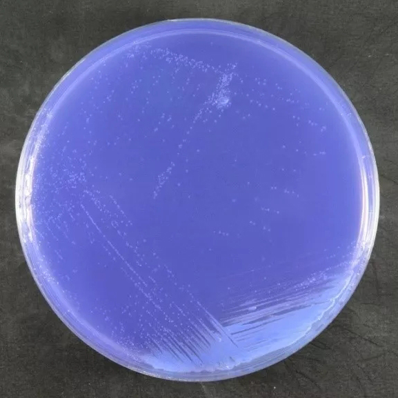 mPDA培养基36 ℃±1 ℃,24 h, 菌落1 mm~2 mm,紫色,光滑、湿润、边缘整齐。