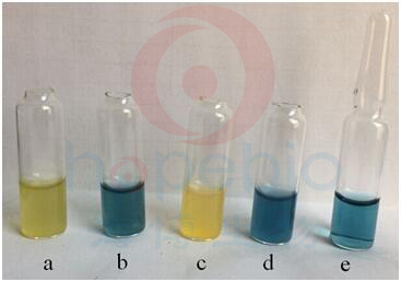 备注:a:产气肠杆菌,b:奇异变形杆菌,c:阴沟肠杆菌,d:普通变形杆菌,e:空白生化管