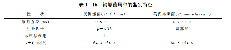 细胞弧形至螺旋形,0.5~1.0μm宽,极生鞭毛运动,细胞行二分分裂,革兰氏染色阴性,属a- Proteobacteria光合内膜片层状。光合色素为细菌叶绿素a和螺菌黄素类类胡萝卜素。酣类以Q-9和MK-9为主。淡水菌,生长不需要氯化钠。细胞喜在光照厌氧条件下光异养生长。但可在黑暗条件下行微好氧生长。需生长因子。G+C mol%为60~66。该属的已知种有两个,其鉴别特征见表1-16。