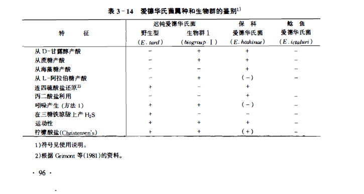 小直杆菌,直径约1μm,长2-3μm,符合肠杆科的一般定义。革兰氏阴性。由周生鞭毛运动。兼性厌氧,接触酶阳性,氧化酶阴性,还原硝酸盐为亚硝酸盐。最适温度为37°C,但鲶鱼爱德华氏菌(E.ictaluri)喜欢较低的温度。在蛋自胨和类似的琼脂培养基上培养24h后出现生长物,菌落小,直径约0.5-lmrn。生长需要维生素和氨基酸。发酵葡萄糖产酸,并常有可观察到的气体,还能发酵少数其他化合物,但与肠杆菌科的其他许多分类单位相比较,活性相差甚远。通常抗粘菌素(Colistin), 但对其他许多抗生素包括青霉素敏感,有很大的抑菌圈。常分离自冷血动物和其他环境,特别是淡水。对鳍绶鱼类、绘鱼和其他动物致病,有时造成经济损失,对千人类是一个罕见的机会致病菌。