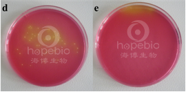 黄色菌落,菌落周围黄色 |