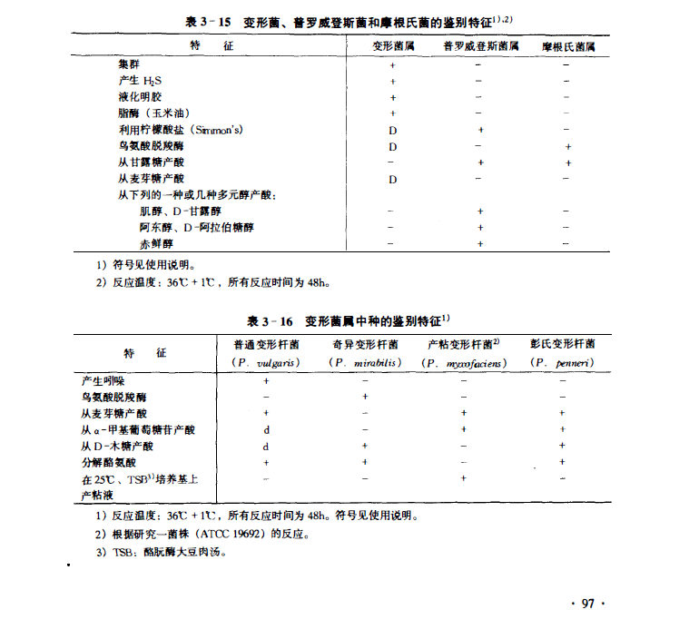 DNA的G+Cmol%为38-41。近似属的鉴别见表3-15; 种间鉴别见表3-16。