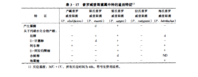 DNA的G+Cmol%为39~42。近似属的鉴别见表3-15;种间鉴别见表3-17。