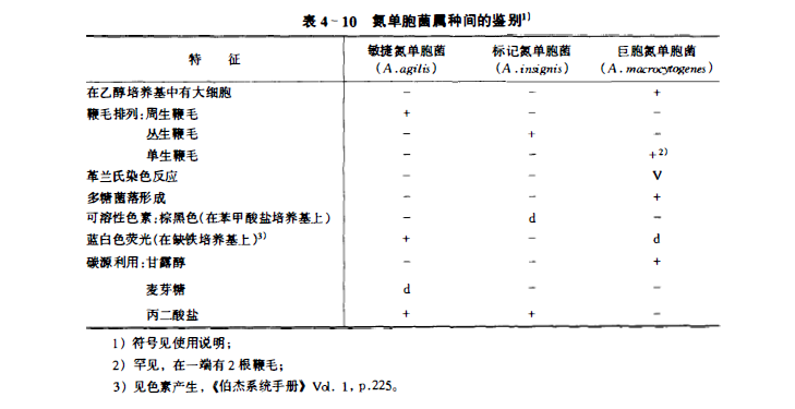 细胞直径2.0μm,长度不同,形状由杆状、椭圆到类球状。单个成对或成堆出现,常有多形态。革兰氏染色通常为阴性,有时可变。不形成芽抱和胞囊。以周生鞭毛或极生鞭毛运动。好氧,但能在低氧压下生长。几乎所有菌株产生水溶性或荧光色素。化能异养菌。能利用糖、醇和有机酸和盐类生长。固氮,通常非共生固氮;每消耗1g碳水化合物(通常葡萄糖)至少可固氮10mg。铝为固氮作用的必需因子。不解酪素,但能利用氨盐和一些氨基酸作为氮源。接触酶阳性。固氮的最适 pH 接近中性,但有些菌株能在pH4.6-4.8时固氮。出现在土壤和水中。该属有3个种,它们的鉴别特征列千表4-10。相近属的鉴别见表4-8。