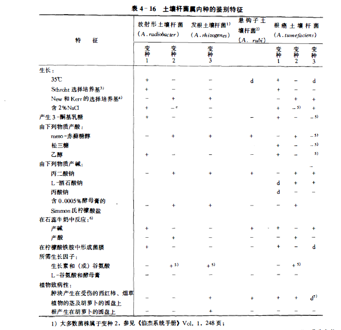 土壤杆菌属的各种鉴别特征见表4-16。相近属的鉴别见表4-14。